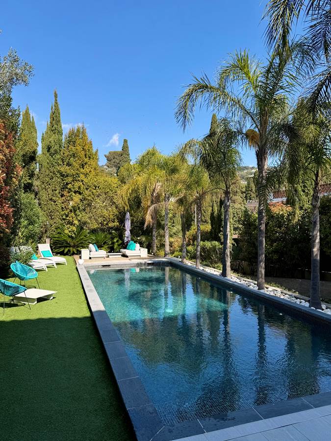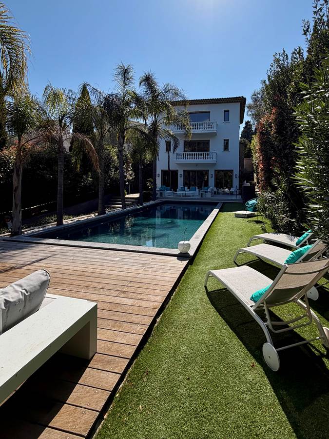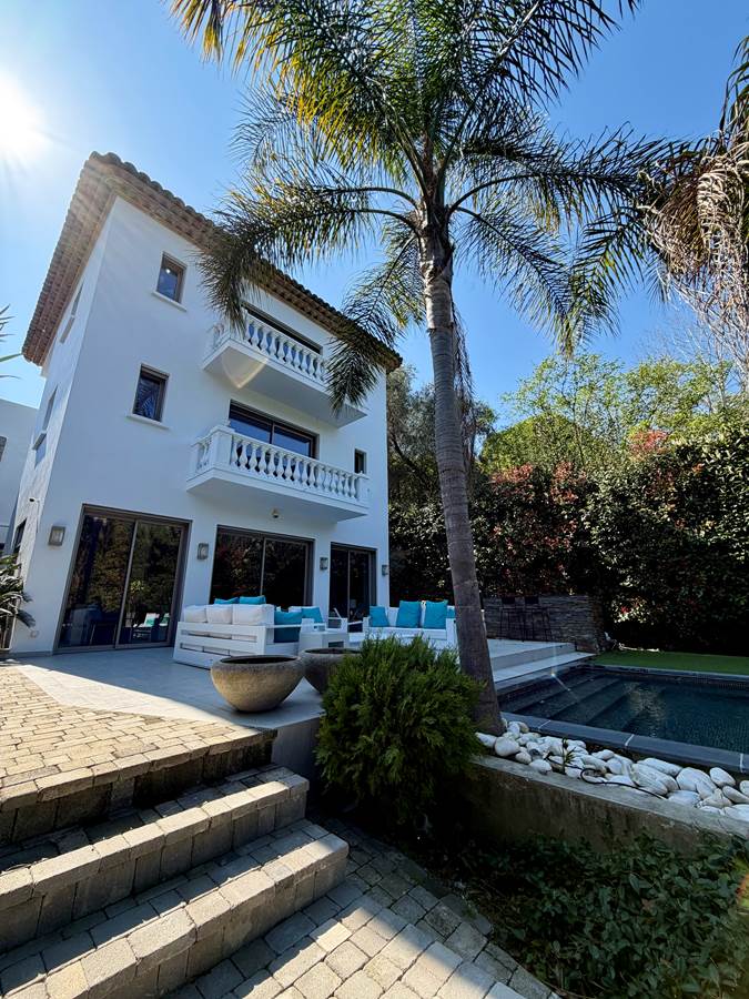 Эта вилла, расположенная в тихом и зеленом жилом районе Изола Белла, предлагает расслабляющую обстановку, оставаясь при этом недалеко от оживленных Канн.